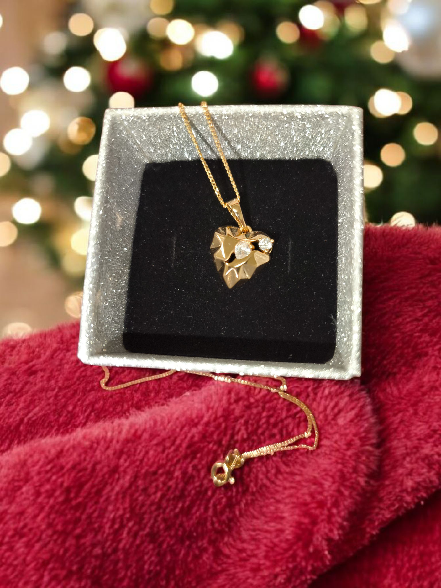 Dovana mamytei – stilingame krepšelyje medicininio aukso grandinėlė su širdelės formos pakabuku ir sveikinimas / žaisliukas.